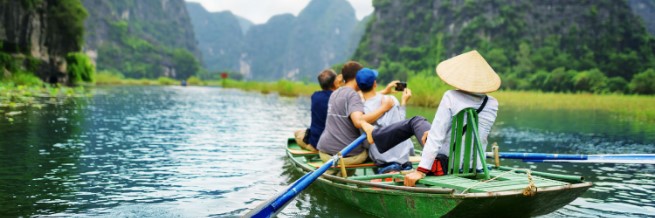 This morning, enjoy a 2-hour drive from downtown Hanoi to Ninh Binh province. It is a spectacular landscape of limestone karts peaks permeated with valleys, some of which are submerged, and surrounded by spectacular cliffs.