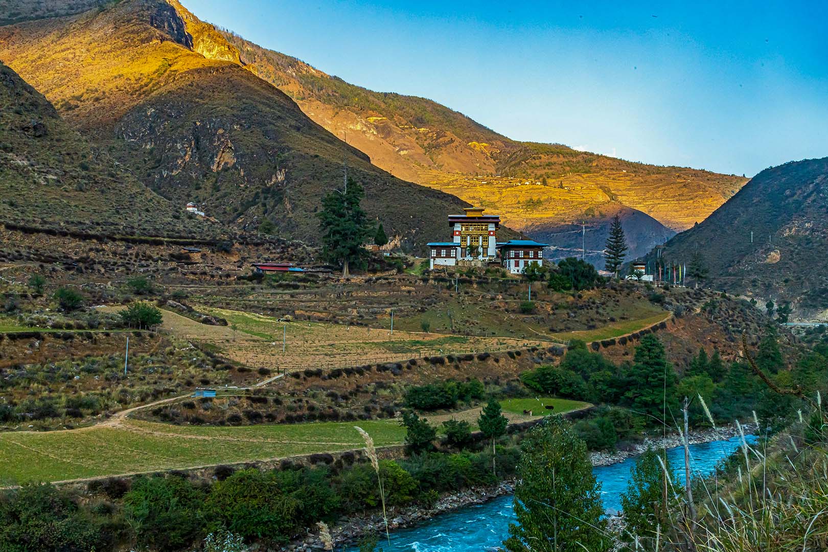 This 6-night, 7-day "Drive In & Drive Out" Bhutan expedition offers a seamless road journey beginning and ending at the border town of Phuentsholing, serving as your gateway to the Land of the Thunder Dragon. The itinerary is perfectly balanced with two nights each in the bustling capital of Thimphu, the scenic valley of Paro, and the entry point of Phuentsholing, allowing for a comfortable pace without the rush of constant travel. You’ll experience a rich blend of cultural immersion and natural beauty, from the massive Buddha Dordenma statue and traditional Chorten in Thimphu to the iconic hike up to Tiger’s Nest Monastery in Paro. By driving both ways, you witness the dramatic transition of landscapes from the subtropical plains to the high Himalayan ridges, making the journey as much a part of the adventure as the destinations themselves.